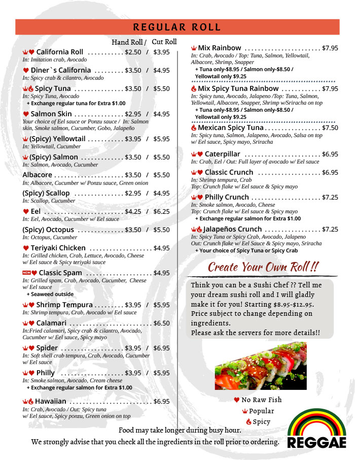 For more information on Sushi Diner, visit sushidiner1.com and check out the menus below.
