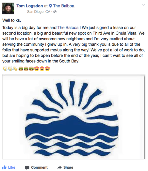 The owner of popular San Diego burger and cocktail destination The Balboa Bar & Grill took to Facebook to announce that a lease has been signed for a large space on Third Avenue in Chula Vista for a second location.