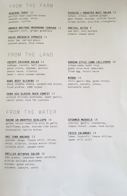 The shareable plates section of the menu is divided into items from the farm, from the land and from the water. Stand-outs on the menu include the Smoked Maitake Mushroom Tempura with togarashi aioli and ginger gremolata, the Korean Style Lamb Lollipops with crispy-smoky sushi rice, green onion-mint remoulade, fried egg and hoisin sauce, or the forever-popular Fried Calamari served with lemon, broccoli, Fresno chilies, and sweet chili aioli.