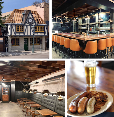 Founded by local developer Alan Cassell and Dr. Gonzalo "Q" Quintero - who is a National City councilman and operates La Bella Pizza Garden in Chula Vista and Grind House Barrio Logan - Tavern at the Vogue is housed in a "Danish Provincial"-style standalone building that neighbors the shuttered Vogue Theatre, which was built in 1945 and is in the process of being revived by local design firm Tecture (minus Chef Steve Brown). Tavern at the Vogue will be a restaurant and beer hall featuring a dozen taps and an extensive bottle and can selection to compliment the menu of sausages, sandwiches, small bites and cheeses. The restaurant will also have a private rooftop dining deck, 22 ft shuffle board table, classic arcade games, and a fridge stocked with par-cooked sausages for take-away.