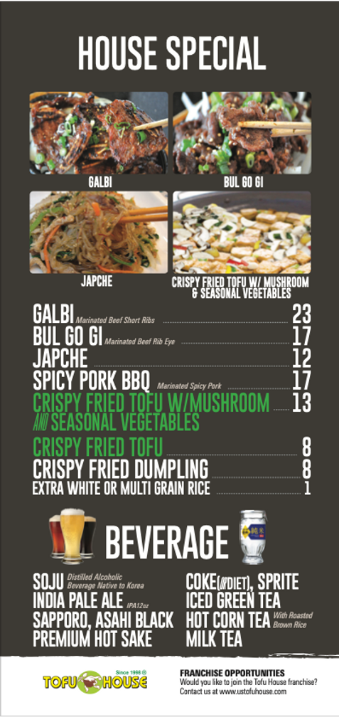 Tofu House will open as early as this July at 6061 El Cajon Blvd. Suite 4, in the SDSU College Area. For more information, visit ustofuhouse.com and check out the menu below.